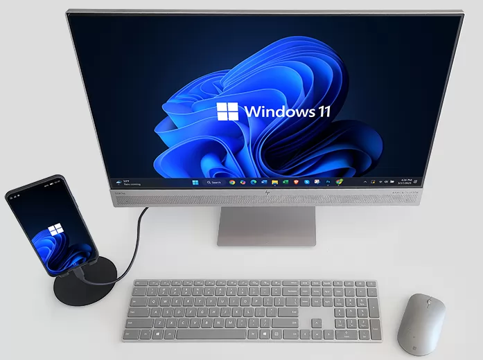 ولتقديم تجربة سطح مكتب حقيقية، يمكن توصيل هاتف NexPhone بشاشة خارجية عبر منفذ USB-C مع إمكانية اختيار وضع سطح مكتب Android أو بيئة Linux Debian أو نظام Windows 11 بحسب رغبة الاستخدام.