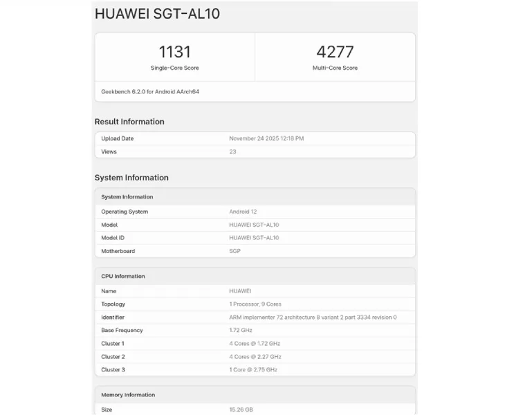 البيانات تشير إلى أن Kirin 9030 يتبنى تصميمًا جديدًا قائمًا على تسع أنوية بتوزيع 1+4+4، وهو ما يختلف عن الأجيال السابقة.