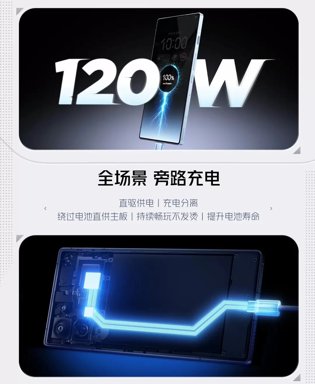 أما قدرات الشحن، فيدعم الهاتف الشحن السريع بقدرة 120 واط إلى جانب ميزة الشحن التجاوزي أثناء اللعب التي تسمح بتغذية الهاتف بالطاقة مباشرة دون التأثير على البطارية ويضم الهاتف أيضًا أزرار كتف مادية مخصصة للألعاب وشاشة بحواف فائقة النحافة فضلًا عن محاكي حاسوب مدمج لتشغيل مجموعة من ألعاب الكمبيوتر الكلاسيكية مدعومًا بمحرك CUBE Sky Engine لتحسين الرسوميات.
