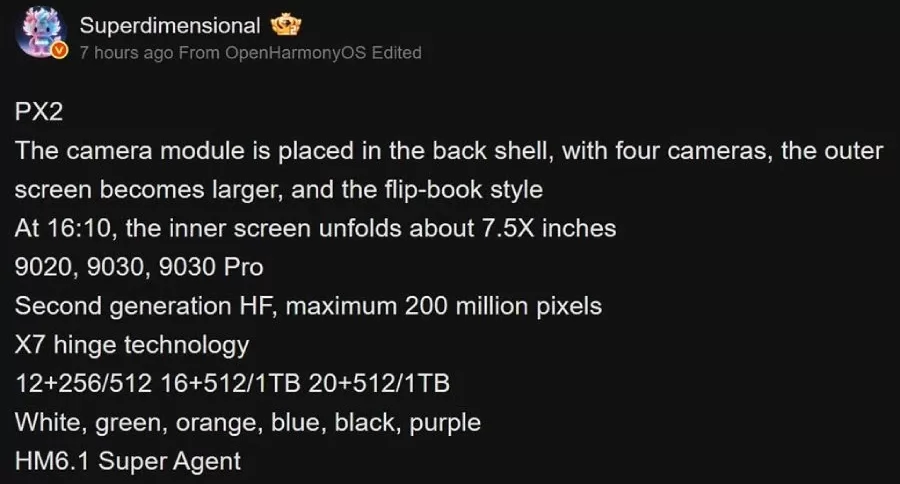 ووفقًا لتسريب جديد نُشر عبر أحد المسربين على منصة الدردشة الصينية Weibo تعمل هواوي حاليًا على تطوير هاتف Huawei Pura X2 كخليفة مباشر لهذا المفهوم.
