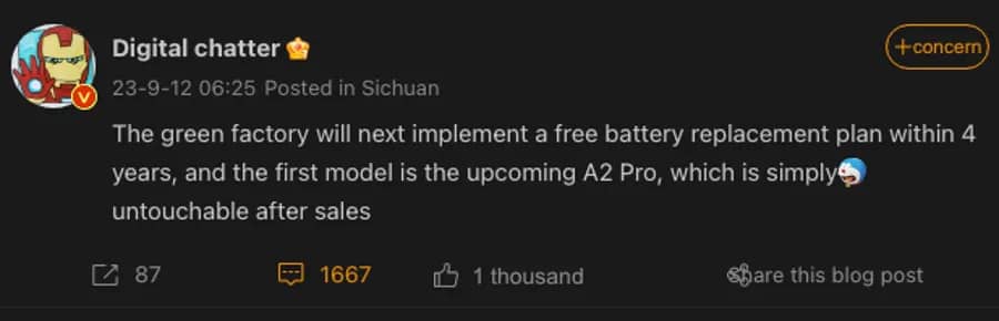 شائعة ترتقي إلى مستوى الآمال، هل تخطط لإمتلاك هاتف Oppo A2 Pro ويشغلك أمر انخفاض أداء البطارية؟ في خطوة ملفتة للأنظار يبدو أن Oppo قد وجدت حلاً مستقبليًا لمشكلة تدهور البطارية، هذه المشكلة التي تؤرق مستخدمي الهواتف الذكية في الوقت الحاضر ووفقًا للمعلومات التي نشرتها محطة الدردشة الرقمية المعترف بها عادةً على Weibo، بالإضافة إلى مؤيدين آخرين على نفس المنصة أن شركة Oppo تعتزم إطلاق برنامج استبدال بطارية مجاني.